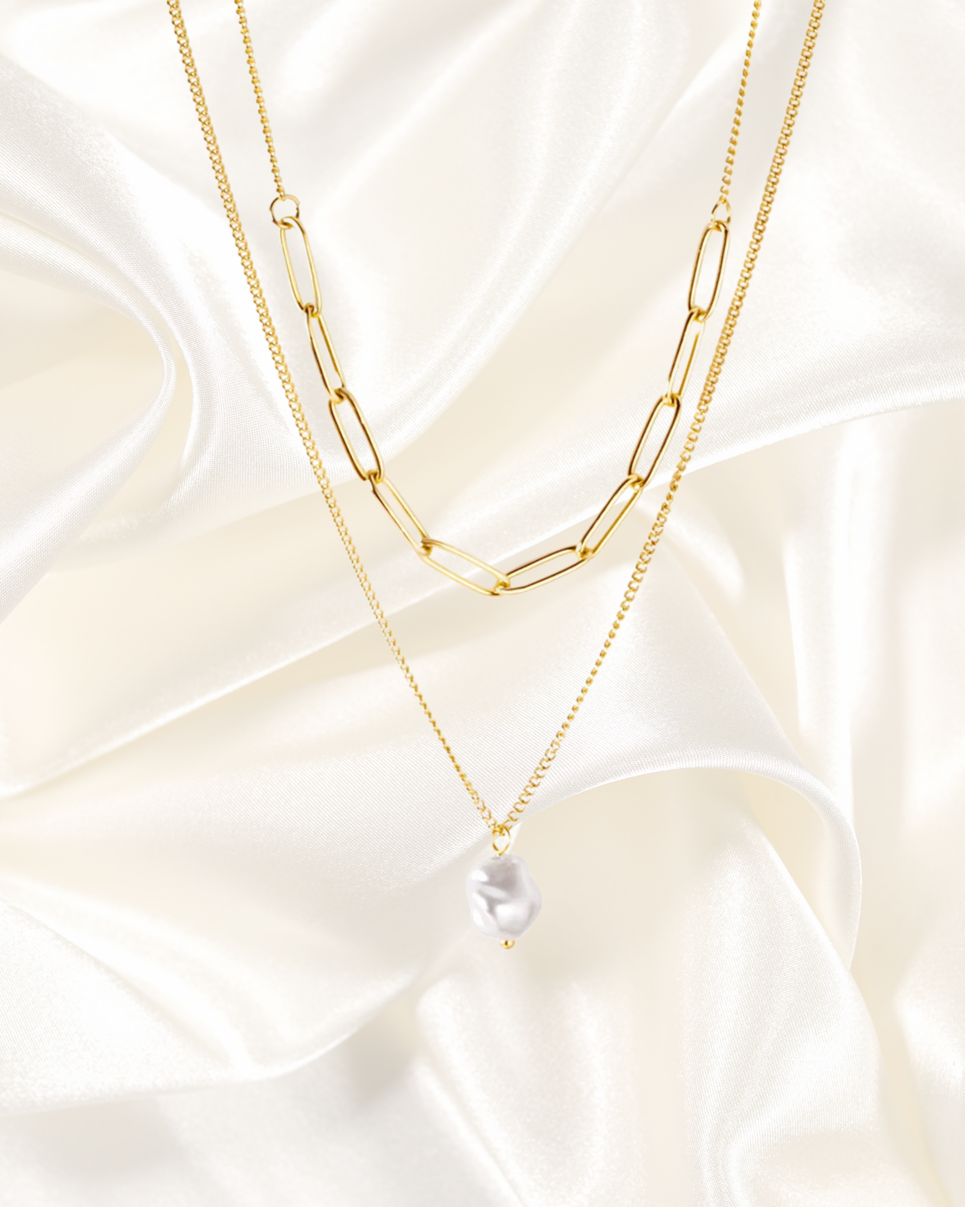 Crafted in luminous 18K gold plating, this elegant necklace features a delicate chain that gracefully holds a marquise-shaped pendant. The pendant is accentuated with a brilliant central stone, surrounded by a halo of sparkling accents that enhance its radiance. Its timeless balance of sophistication and minimalism makes it ideal for both everyday elegance and special occasions — or as a meaningful gift for someone special.