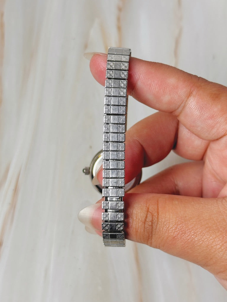 This watch is lightweight and easy to wear, thanks to its flexible stretch bracelet, making it perfect for everyday use or as a delicate accessory.