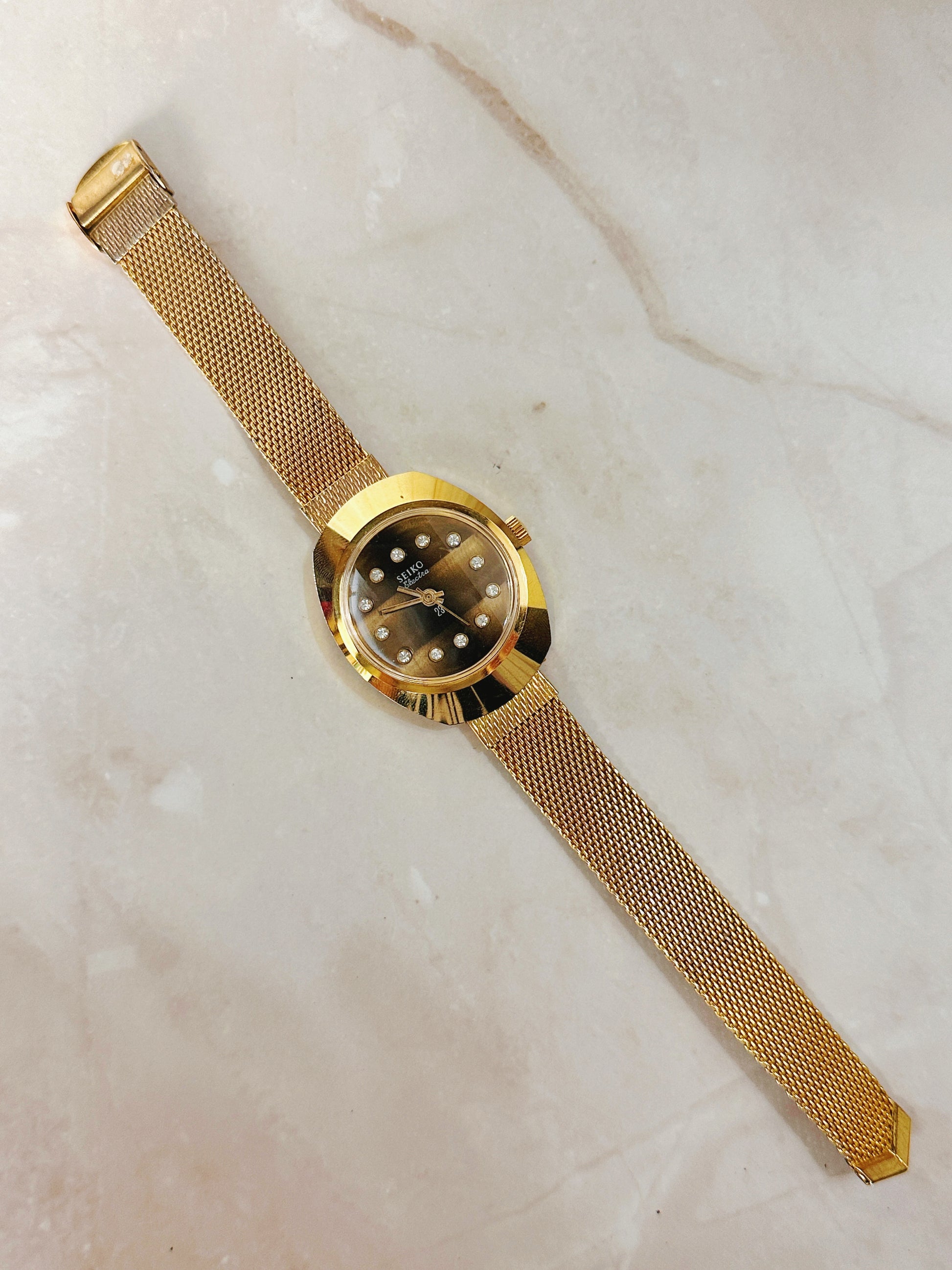 Seiko Electra Gold-Tone Automatic Watch – Date Display – Diamond Markers – Vintage Style