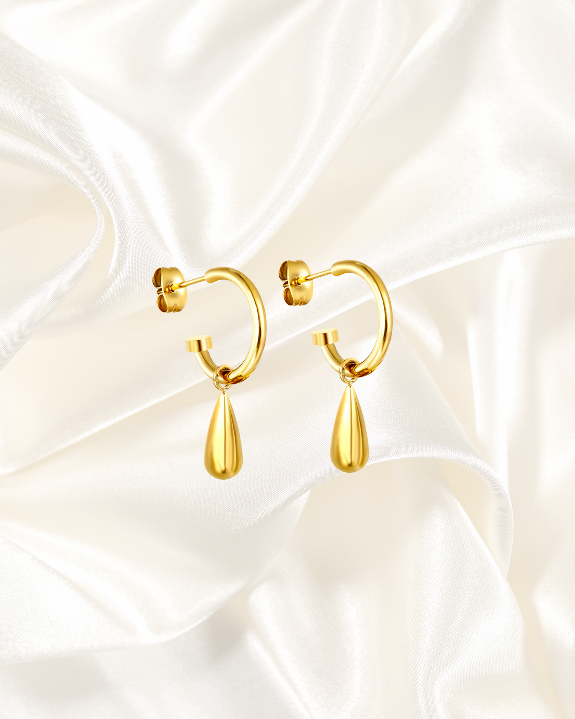 Design: Hoop earrings with dangling teardrop charm