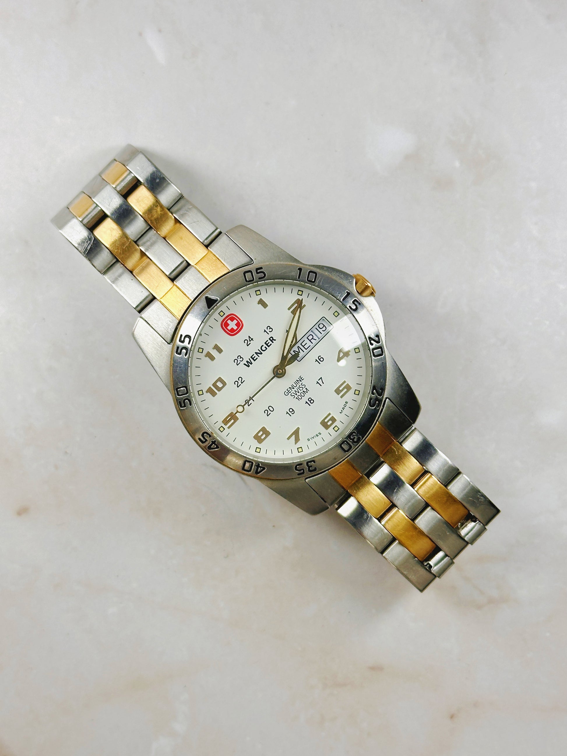 Wenger Swiss Military Two-Tone Watch – Day & Date – 100M – Swiss Made – New Battery